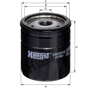 Маслен филтър HENGST H90W12 за SAAB 9-3 (YS3D), 9-5 I (YS3E), 90, 99, 900 I, 900 II, 9000; SKODA Felicia Cube Van (6U5).