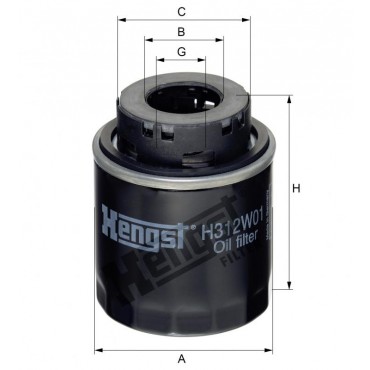 Маслен филтър HENGST H312W01 за Audi A3 II; Seat Altea, Ibiza V, Leon II; Skoda Octavia II, Superb II; Volkswagen Eos, Golf V, Golf VI, Jetta II, Passat (3C2/3C5), Scirocco III, Tiguan, Touran.