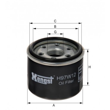 Маслен филтър HENGST H97W12 за Dacia Logan, Sandero; Nissan Kubistar; Renault Clio, Clio II, Clio III, Kangoo, Logan, Modus, Sandero, Thalia, Twingo, Twingo II, Wind