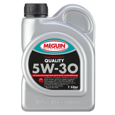 MEGUIN Quality 5W30 е модерно всесезонно моторно масло с ниско триене за целогодишна употреба. Гарантиран нисък вискозитет и висока стабилност на срязване благодарение на синтетични HC базови масла и ..