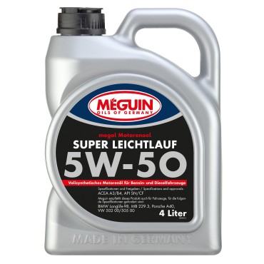 MEGUIN Super Leichtlauf 5W50 е модерно, напълно синтетично моторно масло с ниско триене за целогодишна употреба. MEGUIN Super Leichtlauf 5W-50 e моторно масло с нисък вискозитет и висока стабилност на..